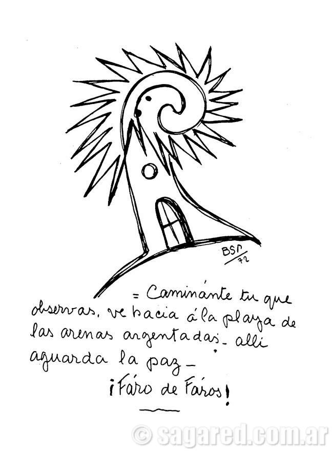 "Caminante tú que observas, ve hacia a la playa de las arenas argentadas. Allí aguarda la paz. ¡Faro de Faros!". (BSP 1972)